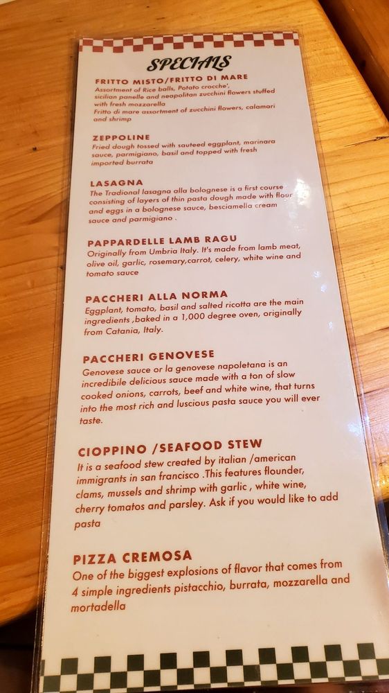 Introducing the menu at Naples Street Food, a cozy Italian pizzeria in Oceanside, NY, offering a unique dining experience. Dive into their signature PIZZA ROSSE (RED) featuring a New York style pizza with a twist - American Mozzarella and San Marzano tomato sauce. Don't miss out on their PIZZA BIANCHE (WHITE) options like Burrata Pesto Pizza and Chicken Caesar Salad Pizza. Specials like the MANGIA MANGIA Bundle offer a complete Italian feast with pizza, pasta, and Zeppoles. The atmosphere is charming, reminiscent of dining at Nonna's house. With rave reviews from customers who appreciate the authentic Neapolitan flavors and warm hospitality, Naples Street Food is a must-try for Italian cuisine enthusiasts. Come for the pizza, stay for the cozy ambiance and friendly service.